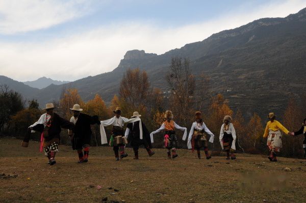 在丹巴素有“歌舞之乡”美称的苏比、达者,在这里的藏民们都能歌善舞,只要有他们的地方就会有歌舞,无论是劳作之余、丰收之后,还是男女婚嫁,朋友聚会,人们总会在蓝天下、阳光里纵饮美酒,且歌且舞。他们的舞姿粗矿豪放,动作刚健潇洒,气势高扬,彪悍,能充分的展现出男子汉的狂放不羁,豪迈的气质强悍的民族个性,舞时要彻底叉腰大踏步跳跃,各种激烈奔放、俯仰翻转的动作将会让观者眼花缭乱。