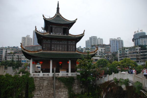 机场离市区大约十公里,因此我们一行四人打出租车直奔预订的七天连锁酒店的盐务街分店,车费和十元一人的机场大巴相差无几。司机对这家新开的分店也不是特别熟悉,倒是我们的人眼尖,一眼看到了路边大厦上鲜黄的招牌。在房间安顿后快五点了。时近黄昏,放学的儿童和下班的人逐渐在街道上积聚,我们接连招了几次出租车,却遭到拒载。看来上下班打的难并不是广州的特产,司机们正值交接班时期,不顺路的不搭。后来只能走到8路公共汽车,顺便挤在公车里游览了一遍贵阳的市容。