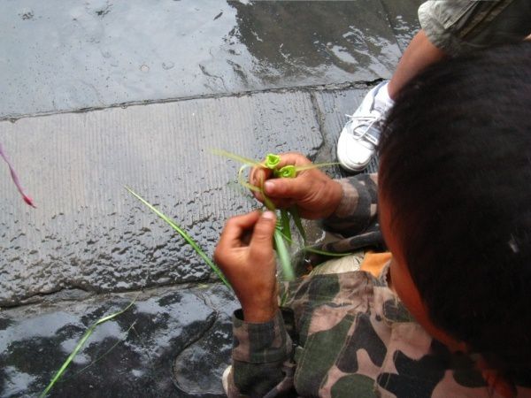 在之后的行程里他一直跟着我,不停的把手里的编好的东西交到我手上。
