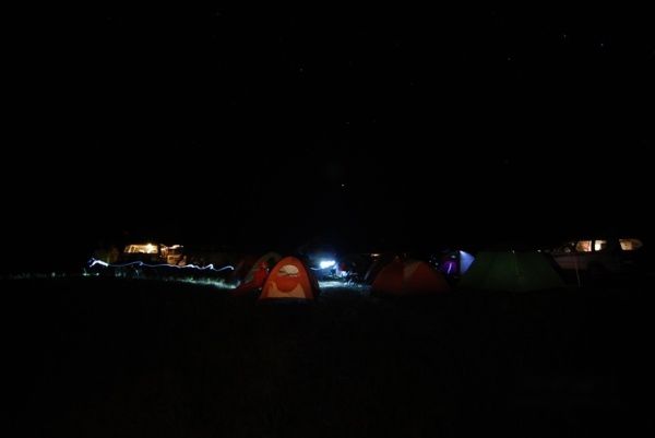 白色山头全部是裸露的石头。再赶路天黑了也不适合扎营,于是就地选择的一片草地做营地。天黑之前组织大家把帐篷好,开始了今夜的“狂欢”... ...