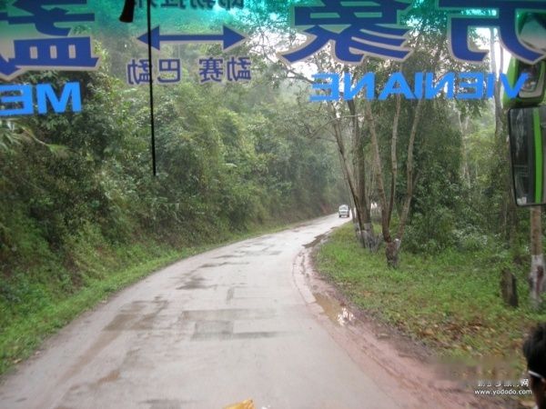巴士行进在213国道上(旁边的高速已在4月通车,温总参加了昆曼公路老挝境内的剪彩仪式,我是早了20天)