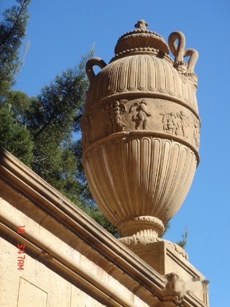 艺术宫的设计仿古罗马废墟,主要建筑是一个圆顶的大厅,配上拱门和石柱,还有大石廊。每个柱子上都站着流泪的女人。原本设计时计划由藤蔓覆盖这些女人身体,藤蔓则由他们的眼泪供给水分,但由于经费不足,最后在廊柱顶端的容器中没有终止任何绿色植物,整个宫殿周围也没有如预期的由红木围绕以增添罗曼蒂克的气氛。