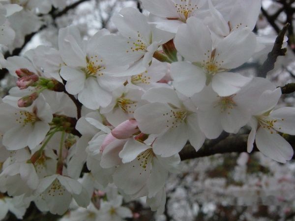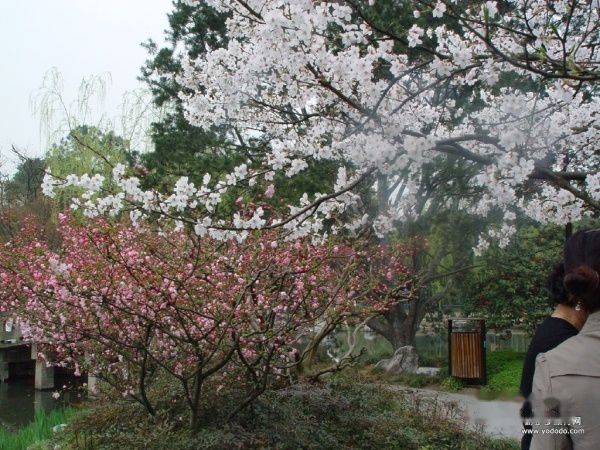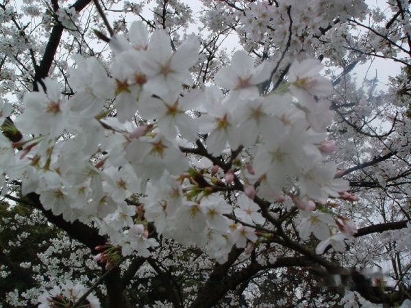 来到花港观鱼处,突然看见一片洁白而又透着些许粉红的花树,颇让人有惊艳的感觉。一问导游,才知是樱花林。这种樱花夹道、连绵不绝的胜景,我还是第一次见到。没想到这成片、成排的樱花林,竟是那样鲜活淋漓,那样蔚为壮观。这些樱花树正处于盛开时节,樱花树上几乎看不见叶子,洁白的花就直接开在褐黑色的枝干上。它的树干努力伸展,曲屈盘旋,如蟠如螭,花枝或旁逸斜出,或藏而不露,还有一些伸向湖中,似乎是要照照自己婀娜的身影。轻风拂过,摇曳多姿。此情此景,不禁让人心神俱往,思绪冥冥飞驰,仿佛自己幻化成一只翩翩起舞的蝴蝶,将身心一概融进这千媚百态、绿语呢喃、的缤纷和温馨之中。