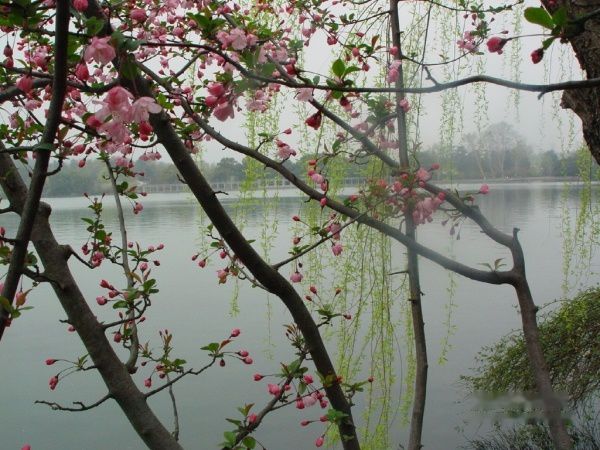 穿行在郁郁葱葱的苏堤,只见簇簇丛丛的花草给湖畔铺满了大片大片或粉白、或浅紫、或绯红的色彩,如云霞飘逸,彩虹灿烂。然而我觉得最引人注目的却是“参差佩玉排空出”的玉兰,千花万蕊,皎洁清丽,缀满新叶未展的枝干上,白的、紫的、粉红的,色彩丰润,俯仰舒展,摇曳生姿;或亭亭玉立,洁白无瑕;或婀娜妩媚,仪态万千。色彩缤纷而不娇艳,雍容华贵而不奢丽。或含苞待放或娇艳欲滴,美丽端庄得如处女般纯洁美丽,在这春日里连最惹人怜爱的玫瑰也无法与之比拟! 置身在这旖旎的花海中,没有人可以抵挡得了美丽的诱惑,就像席慕容那首诗里写的:“我一直想要/和你一起/走/ 那条美丽的山路/有柔风/有白云/有你在我身旁/倾听我快乐和感激的心……”