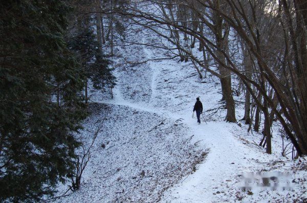第一次尝试在雪地中如此长距离的行进。这次有超过1/3的路是在雪地上走的,没有专门的雪爪什么的,也没有手套和帽子,下山的途中摔了一跤,步行过程中觉得手和耳朵都有点冷。