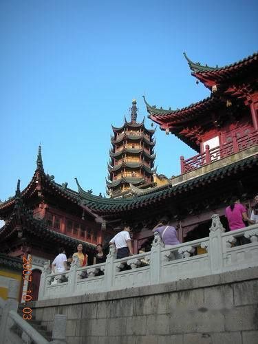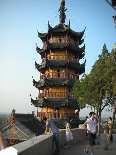 天王殿的后侧拾级而上就到了慈寿塔,此塔初建于齐梁,距今已1400余年。金山过去有双塔,已经废了,现存的塔是清光绪二十六年(1900年)重建的。塔身为木结构,七级,有梯可上下,每层都围以走廊和护栏。