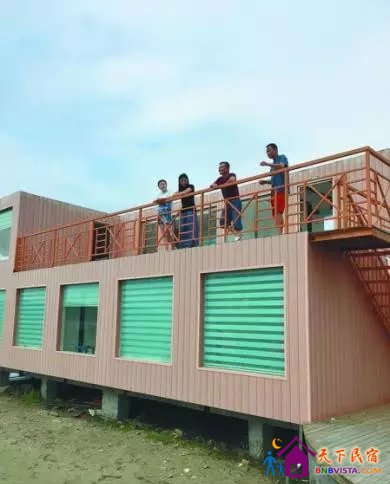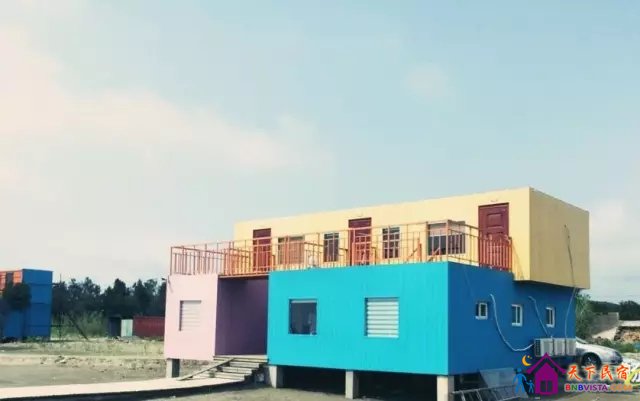 盒子般的集装箱民宿建在鹿栏晴沙沙滩上,