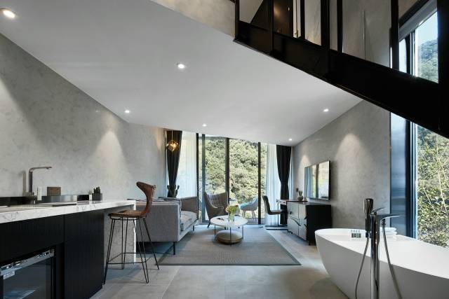 不同位置和角度的九溪山水被恰到好处地移入房间。