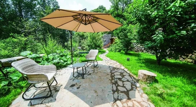 私人花园充满了生活情趣,从房间走出,还要跨过一条涓涓细水;花园内也处处充满惊喜,各种别致的小景观让它变得生动活泼;