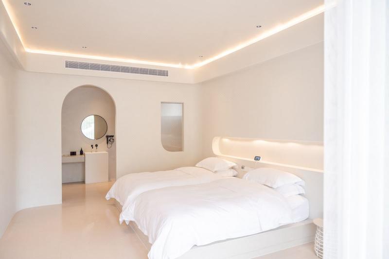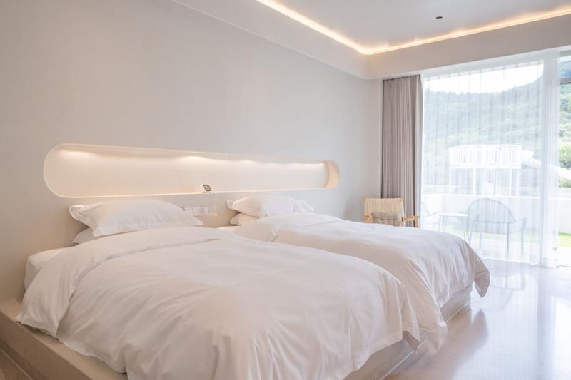 民宿坐落在瑞安市圣井山景区附属的听泉景区内,现代风白色的建筑、山泉水边的无边泳池和大面积的休闲草坪、在美丽的群峰和树林衬托下,成为了大自然中最靓丽的风景。 总占地约10亩,拥有2幢独立建筑,拥有18个不同特色的房间,搭配了智能控制系统,内部的主色调是白色与原木色系,大部分的房间做了挑高设计,透过大块的阁楼窗户,映入眼帘的满是绿色,坐在庭院里,吹着微风徐徐,听着泉水叮咚,远观瀑布,欣赏那素白的水,听着那隆隆的水声,给人以回归自然的感觉! 周边拥有圣井山四绝(圣井石殿、杜鹃花海、云海雾涛、枫香听泉)、龙潭瀑布、木活字印刷、大南古道等丰富的人文景观,放空闲暇之余也能尽情去体验当地各种人文特色。