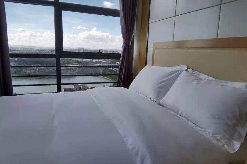 酒店位于春融街地铁站口,周边有置信银河广场、吾悦广场、万达广场等商圈,附近有各大银行,大型商超。斗南国际花卉市场地铁站仅有一站,楼下约100米就是洛龙湖公园,占据呈贡新区的核心位置,与昆明市政府相邻,近云大医院,周边环境优美空气质量好,交通便利,适合家庭度假,商务出差!而且顶楼的独特位置,可以为您带来全新的体验,一眼望去,四方风光无限好! 酒店床品都是采用优质面料,干净整洁,绝不含糊!房间有独立卫生间,干湿分离。整体厨房,房间空间足够大,足够高,丝毫没有紧迫感和压抑感,让您体验家的感觉,找到家的温馨!