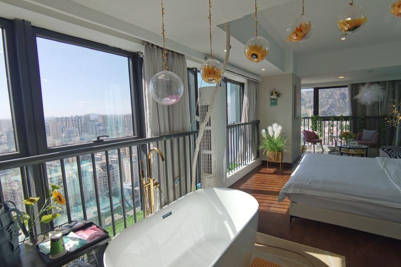 - 房间(开放): 楼 灼灼韶华 ·270度全景观影浴缸房