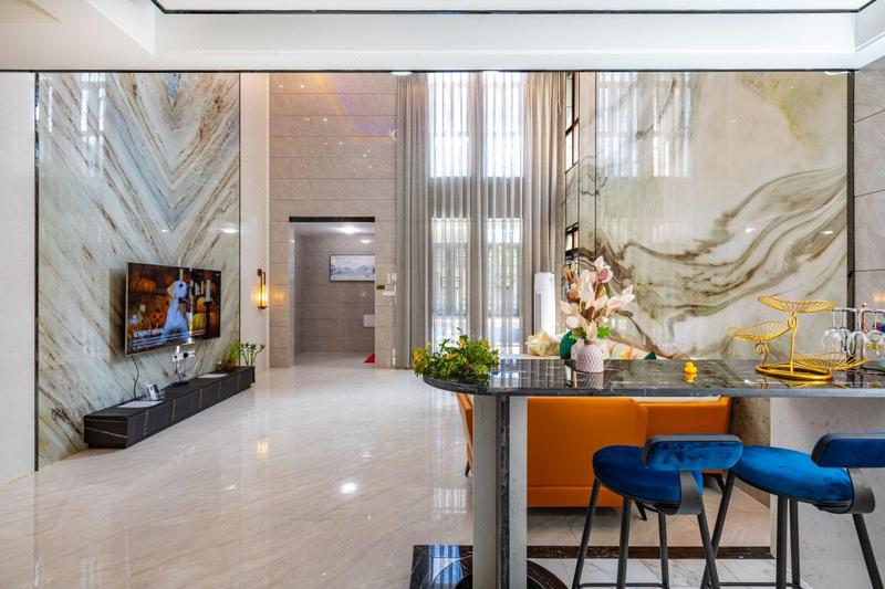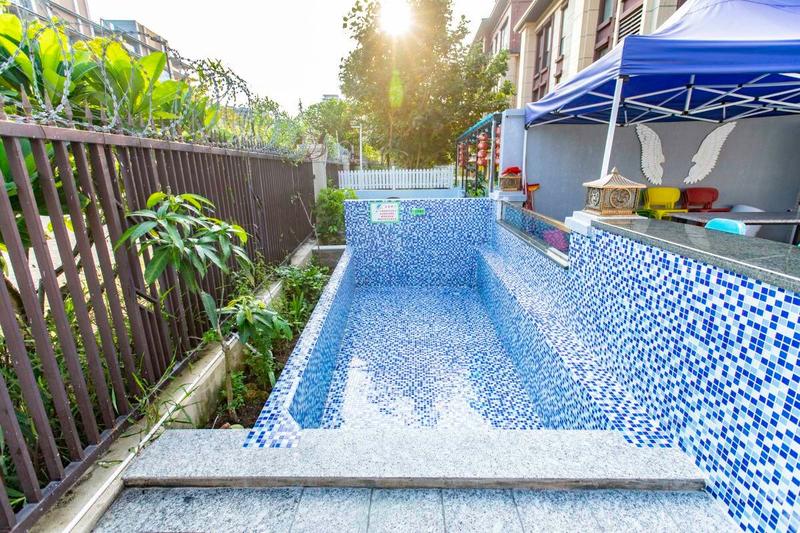 别墅让您在汕尾这个陌生又熟悉的城市,感受到一丝清浅但又实在的温暖。您一定不能错过。别墅位置较好,位于汕尾市城区马宫街道保利金町湾滨海旅游度假区。楼下即沙滩,海浪、蓝天、白云尽收眼底。别墅位置极具优势,出门就是汕尾保利金町湾旅游度假区,距离保利金町湾海上香格里拉之水上欢乐世界较近,周边著名的景点:凤山祖庙旅游区、铜鼎山旅游区、红海湾旅游区、汕尾风车岛,还有网红打卡景点金町湾婚礼堂。别墅被葱郁的热带园林所拥抱,可观赏壮丽海景及享受延绵不断的沙滩,可充分体验日出东方的磅礴澎湃,可充分感受惊涛拍岸的波澜壮阔,清晨可迎着朝阳在沙滩上散步,夜晚可听着涛声在阳台上小坐。 舒适度作为海边别墅所有的客房是首要标准,一切设施都以此为目标,一定不会让您失望。宽敞的客房,配有空调,阳台/露台,迷你吧,书桌,手动窗帘,液晶电视机,小厨房,冰箱,淋浴设施,茶机等设施,定能让您瞬间忘记旅途的疲倦。这是一个充满文艺气息又时尚浪漫的海边别墅,房间风格各异,但又相互融合,或慵懒闲逸,或神秘浪漫,或静雅别致。尤其值得一提的是内外空间的结合,打开窗时呈现的自然风光,让人通过享受到达灵魂的最深处,管家式服务让您更加安心,您可尽享一线海景,鑫海海景泳池别墅为来自世界各地的旅行者提供超越期待的体验,是为宾客提供细致、高效、友好的人性化服务,是旅行,度假入住的理想选择