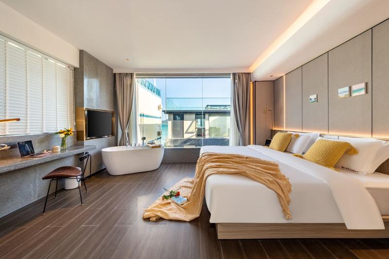 豪华海景浴缸家庭大床房(记忆枕+梦百合床垫+智能客控+智能马桶)