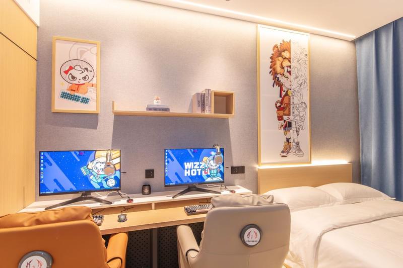 酒店是一家专业以泛娱电竞为主题的酒店,所有设备均为赛事级的高配置电竞设备,RTX3070和RTX3080的显卡配置、高刷显示器、专业级百兆专线、赛事级电竞外设、舒适的沙发椅为您的游戏保驾护航。 除此之外还有十秒速热热水、畅玩WIFI、知名品牌床上用品、贴心洗漱套装呵护您的生活,同时还配备了自助洗衣区、智能马桶、静怡的阅读空间,满足您的一切生活所需。 漫步在未知里泛娱电竞酒店的公区,你能随处可见温馨大气的设计、好玩潮玩的元素:电竞等待区、主机游戏体验区、桌游区、狼人杀、潮品柜、平价超市、阶梯教室...... 我们希望“乐与住人”的理念与电竞酒店完美融合,打造出让人耳目一新的娱乐综合体。 酒店交通便利,毗邻地铁二号线,集餐饮、娱乐、休闲于一体的线下实体生活潮集地!