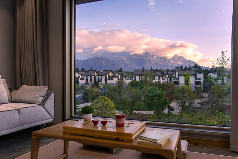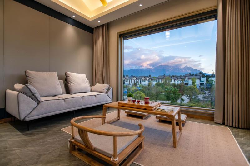 别墅位于丽江市金茂谷镇二期艺术工坊,这是一个由高星酒店、大剧院、商业街和别墅群构成的宜居小镇,客栈占地面积约500平方米,由两栋别墅围合成一个独立院落,远离古城的喧嚣,清晨于鸟鸣声中醒来,抬头便能看到白雪皑皑的玉龙雪山。2楼及3楼客房还开辟了观景阳台,可悠闲的享受丽江蓝天白云无人打扰的慢生活。