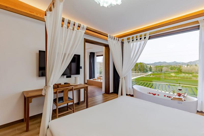 中国是一个茶的文明国度,茶为“国饮”。“人在草木间”,道出了华夏儿女对茶的虔诚、敬仰与依恋之情。来到素有“千年茶乡”之称的“中国最美乡村”婺源,不仅要饱览如诗如画的美景,沐浴闻名灿烂的徽文化,更要怀抱乡村四野,择一民宿,用优雅和从容细细勾勒生活的模样,给心一个寄托。 “寂寞山林日影斜,绿荫深护几人家。我来恰值炊烟起,满座香风酒与茶。”来到距离婺源县城仅15分钟车程的“民宿之乡”思口镇,在金竹村路牌处往左拐,沿着小路缓缓而行,过一座小桥,就能看到这“隐居”在一片茶园里的民宿。 这座民宿既非古宅民宿,也非洋民宿,而是一座现代轻奢风民宿,设施考究、服务上乘,可谓是乡村民宿的“融合版”和“升级版”。这座民宿,以“栖茗”自称,正是“人在草木间”的再版。而“一见如故”,既是表达“以茶会友”的情怀,更是抒发“世界上最美的归宿就是家”的情感。 走进民宿,但见标着“听风、听雨、听沙、听琴抚;望山、望水、望云、望江湖;思乡、思物、思情、思故人;来时路、去时影”名称的客房,令人浮想蹁跹、流连忘返。它们似乎将人的听觉、视觉和想象力、创造力全都激活了……而这的一处泳池、一间木屋,则让你尽情释放旅途劳顿的疲倦,尽情享受“茶余饭后”的欢愉。正如木屋的名字“等你”,如故乡、故友、家人,我只知道你会来,所以我等你…… 民宿主人是一位女茶人。老板娘说,民宿坐落的这片茶地哺育了她母亲和她姐弟仨,“创办民宿的初衷,就是想回到自己生命的起点,不能忘记自己当初出发的地方。”为了让母亲享受“慢生活”,也为了游客乐享“慢时光”,老板娘就在她母亲种植的茶园里建起了新家。这座民宿既保留了徽州建筑风格,也融合了现代极简风尚,是广大都市客喜爱的温馨的窝。而老板娘脸上的小酒窝,也透露了她内心的小秘密,“我爸爸、妈妈平时都喜欢喝点小酒,喜欢交朋结友。人和酒都是风景,都值得留恋、回味……” 一个“茶窝”、一个“酒窝”,似乎是本“无字书”。 在这本书上,你们会品读到什么呢? 那么,请往本民宿走一趟吧!