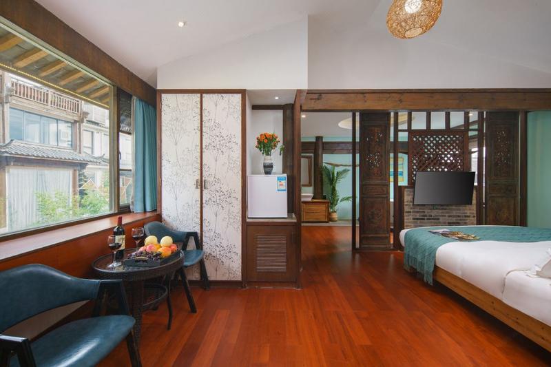 客栈位于束河古镇老指挥部附近,毗邻飞花触水、四方街、青龙桥,出行游玩、吃饭、往返机场火车站景区交通都很方便,逛古镇只需出门步行即可,客栈门口还有停车位,也方便于自驾游。 偌大的花园度假泳池院落,雪山天空之境观景台网红打卡拍照点,入住客栈还提供旅拍服务(摄影师+单反+服装),也可以为你的旅游出行进行定制性的规划设计,公共区域还有茶室两间,可免费自助泡茶品茶。 客房采用纳西木刻工艺制作的家具用品,古色古香,轻纱细幔,温馨怡人,房型齐全,适合各类人士入住,让你的旅行度假时光在感受丽江特色魅力的同时又不失舒适感。