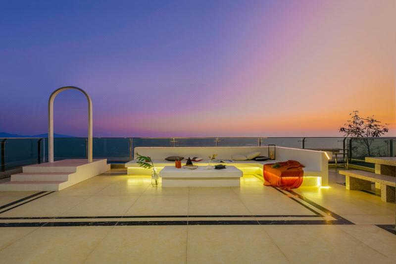 一线海景大露台·3房5床烧烤KTV空中美墅+KTV+露台烧烤+天际海景+自动麻将