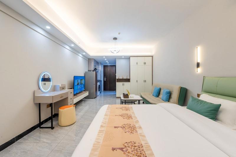 公寓倡导商旅途中视觉、听觉、味觉、嗅觉、触觉、等“五感”全方位体验。时尚的英伦现代公寓设计风格,简约却始终精致。致力为宾客打造一个贴心舒适的商旅住宿空间。