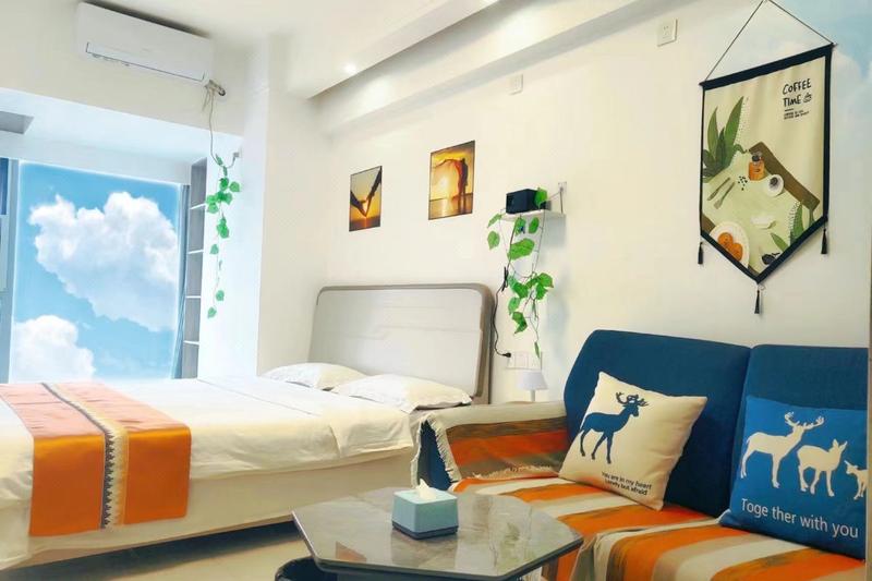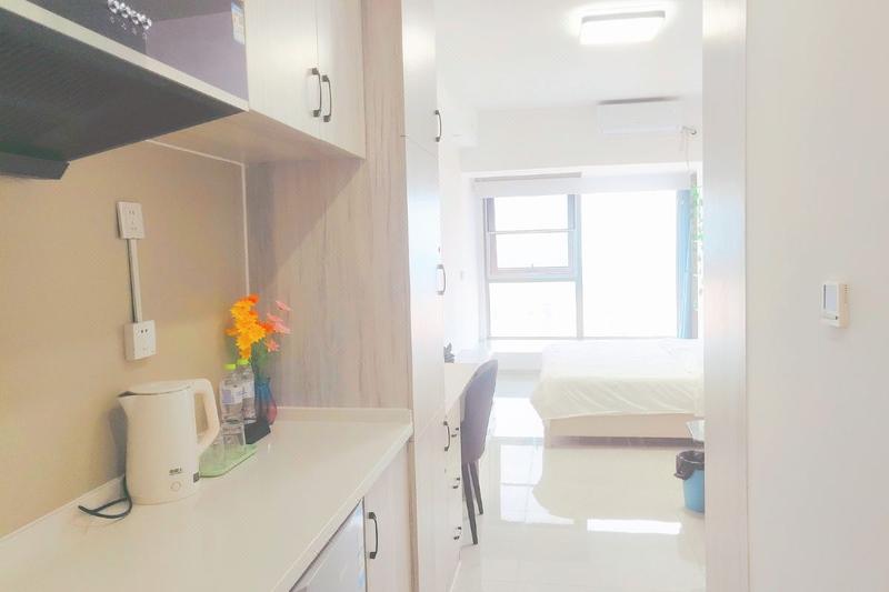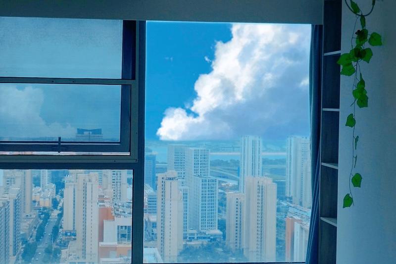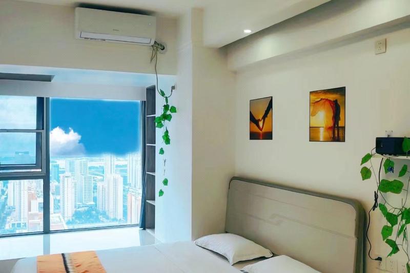 房间:(海润时光·紫萱)~高层看海景赏日出+冰箱洗衣机+电脑+可做饭豪华大床房
