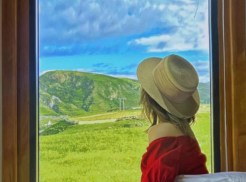 民宿位于四川省甘孜州道孚县八美镇雀儿村一组94号,左墨石公园景区16分钟的路程,左云绕雅拉雪山1.02小时,右惠远寺16分钟,右雅拉雪山景区30分钟的路程等 整体风格是复古田园风,非常幽静,民居房子搭配大面积玻璃,每个房间的景观都不太一样,我喜欢站在玻璃窗前看外面风吹麦浪。民宿把田园的氛围营造的特别好,在这里住上两天真的感受到了心灵的休憩。 听说每一个喜欢远方的孩子心里都有一个回归田园的梦。困在生活里你有多久没有听风儿吹过麦田的声音,看鸟儿划过云朵的天空。在异域星球的墨石公园附近就有这样一个满足你对所有田园幻想的地方。 清晨的阳光温柔唤醒柔软被窝的你,缓缓伸个懒腰打开窗户。温柔的风,淡粉的又或是蓝色还有白色的云一片片飘过来。美好的一天就这样开启了。 青稞地的餐厅一大片绿色都是健康和自由的味道,好看又美味的包子和酥油茶都是民宿小哥哥亲手制作。整整一天哪里都不想去就这样安安静静的呆着可以看书画画发呆。 能歌善舞就是这个民族与生俱来的,在傍晚在田野三五好友,小酒小肉,欢声歌舞。