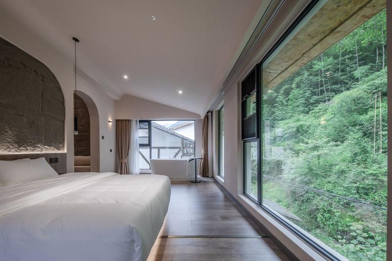民宿是沐云文旅民宿品牌旗下的民宿品牌,项目位于雅安市宝兴县邓池沟国家4A旅游景区,是世界自然遗产--中国大熊猫栖息地的核心地区,也是四川西部大熊猫生态旅游环线上的重要节点,距离成都,车程大约3.5小时。沐云熊猫缘起是邓池沟高品质的旅居美学小酒店,除客房外,拥有中式餐厅,咖啡厅,图书室,会议室,无边泳池,艺术文化交流等多元化生活美学空间与活动,以满足不同人的需求。 民宿配有多间客房,包含亲子房,大床房等,客房面积15-55平。适合亲子,家庭,朋友集体出游。来这里可以在优美的风景中,感受身居自然,早观云,夜观星,夏可避暑,秋观红叶,冬赏雪景的独特乡村度假体验。