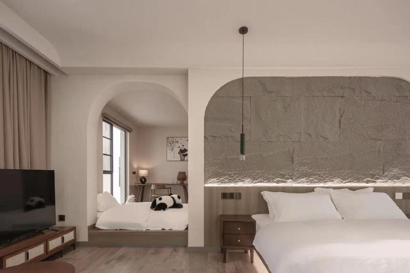 民宿是沐云文旅民宿品牌旗下的民宿品牌,项目位于雅安市宝兴县邓池沟国家4A旅游景区,是世界自然遗产--中国大熊猫栖息地的核心地区,也是四川西部大熊猫生态旅游环线上的重要节点,距离成都,车程大约3.5小时。沐云熊猫缘起是邓池沟高品质的旅居美学小酒店,除客房外,拥有中式餐厅,咖啡厅,图书室,会议室,无边泳池,艺术文化交流等多元化生活美学空间与活动,以满足不同人的需求。 民宿配有多间客房,包含亲子房,大床房等,客房面积15-55平。适合亲子,家庭,朋友集体出游。来这里可以在优美的风景中,感受身居自然,早观云,夜观星,夏可避暑,秋观红叶,冬赏雪景的独特乡村度假体验。