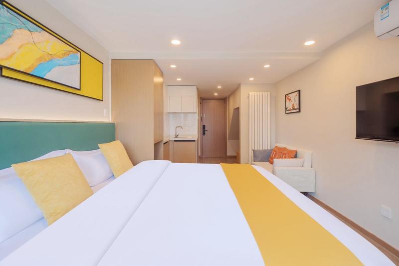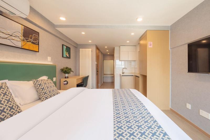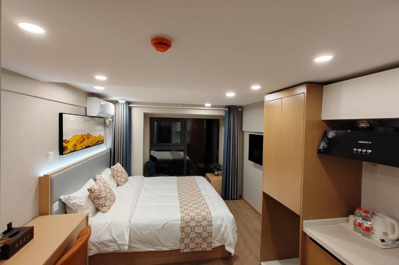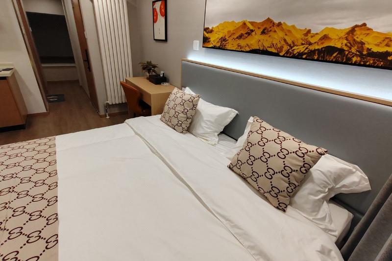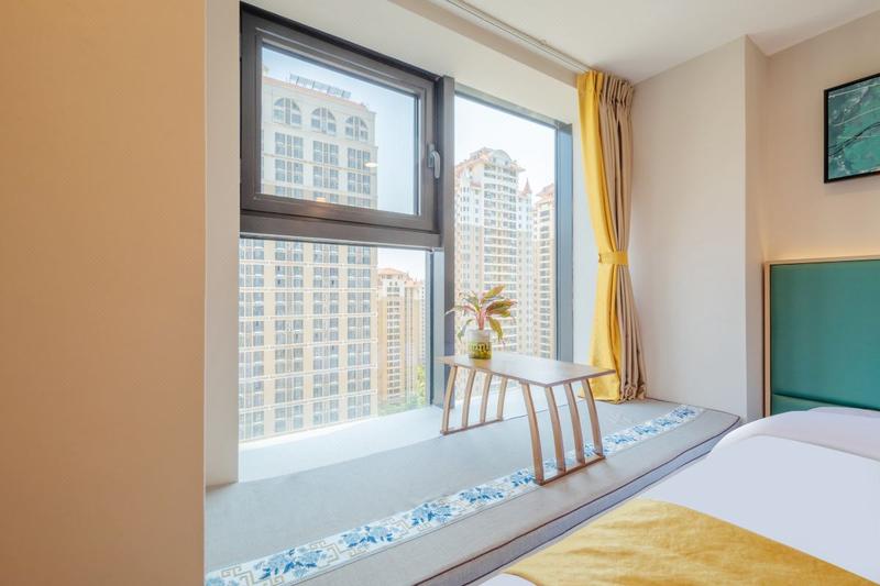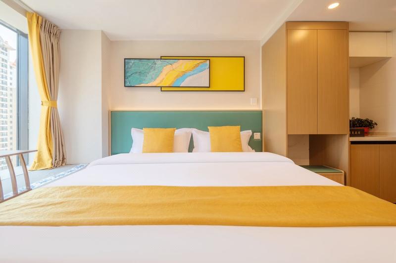 本店位于烟台市福山区万科城市广场,坐落于福山区福海路,门前有33、35、308、521、526等各路公交车,地理位置佳,环境温馨舒适,距离金沙滩海滨公园驾车15分钟车程,烟台南站驾车30分钟车程,蓬莱机场驾车30分钟车程,烟台西站驾车5分钟车程,本店毗邻星巴克、肯德基、必胜客、家家悦等。周边有烟台市实验中学、崇文中学、尚德中学、格迈纳尔中学等,仅需5分钟车程。 本店装修别致有格调,客房装修统一。 设有独立卫生间、24小时热水、WIFI覆盖。店内布置陈设按照高端商旅标准配备有海信全系1.5匹空调、43寸液晶电视、美的热水器、吉庆牌零压床垫、高端床品、格莱德系列热水壶、吹风机。 尊敬的宾客,我们将以热情贴心的服务,温馨舒适的房间,期待您的到来。