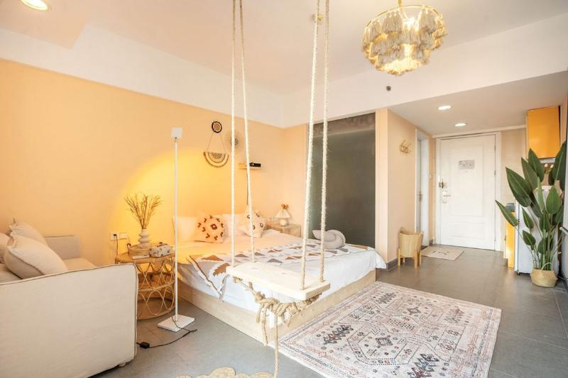 - 房间(开放): 楼 风景阳台·温馨大床房公寓‖洗衣机