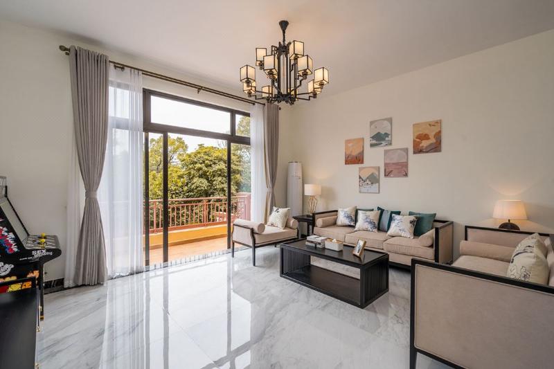别墅坐落于美丽的佛山市高明区美的鹭湖森林度假区,环境优美,空气清新,远离烦嚣,世外桃源,毗邻银海高尔夫俱乐部、对川茶景园、鹭湖国际会议中心、爱丽丝庄园、安纳希小镇、白鹭湖生态保护区等车站与旅游景点。 客房设计专为旅游度假而设,低调奢华又不失格调。公寓秉承公司一贯追求的高品质服务理念,重金投入电信设施,高速wifi,高清液晶电视、冰箱、24小时热水系统、全自动洗衣机、空调、厨房等,更是拥有麻将机、KTV(部分房型)、泳池(部分房型)等设施应有尽有。度假区内停车免费一台,超出的车辆停在外面停车场。 美的鹭湖度假区内设有机动游戏项目、旱冰滑雪场、鹭湖雅乐游船、越野车俱乐部、实弹射击俱乐部、爱丽丝花海世界等精彩活动项目,适合家庭出游或公司团体团建;周边有罗马广场、天润购物广场、对川农贸市场、水岸农庄、泉水农庄、豪园农庄、咖啡厅,吃喝玩乐一应俱全。