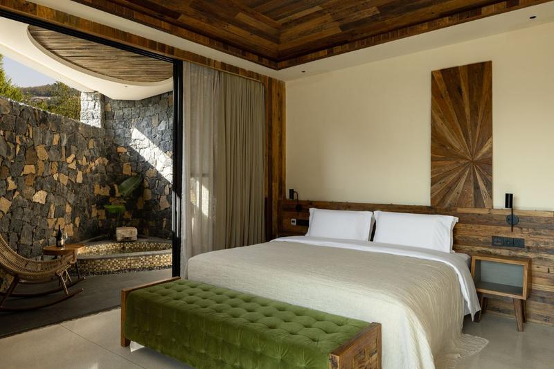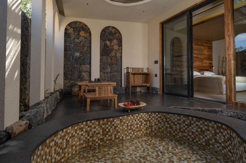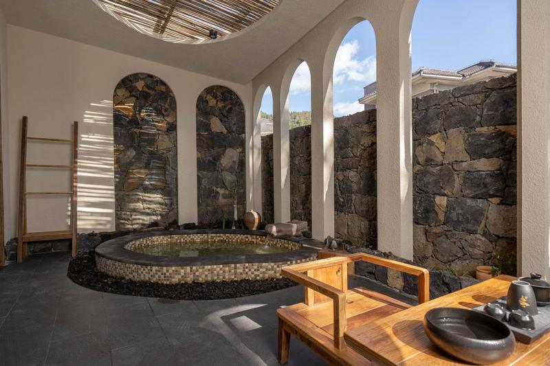 隐居祖国极西之地|诗意栖居|天然地热温泉|在三宅一届开启汤泉疗愈生活美学。 酒店就坐落在腾冲腾越镇,偏居一隅,闹中取静。建筑主体伴山而居亲近自然,交通便捷却又安静舒适。 |关于房间 深入高黎贡山腹地,将80°富含多种矿物质的界头大塘温泉,从1500米的地心引入客房。边城八十八处温泉喷珠溅玉,在腾冲与治愈的泉水相遇,不慕天池鸟,甘做温泉人,尽享滋养温泉私汤。 |关于分享空间 酒店公区拥有公共茶室、景观泳池、餐厅,儿童乐园,以及满足更多私人需求的健身房、会议室、私人茶室等。刻意设计成不设隔的流畅动线,意在有意消减人与人之间的物理距离。你可以在房间内享受温泉滋养,也可一身轻松地漫步腾冲。