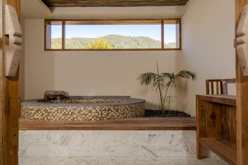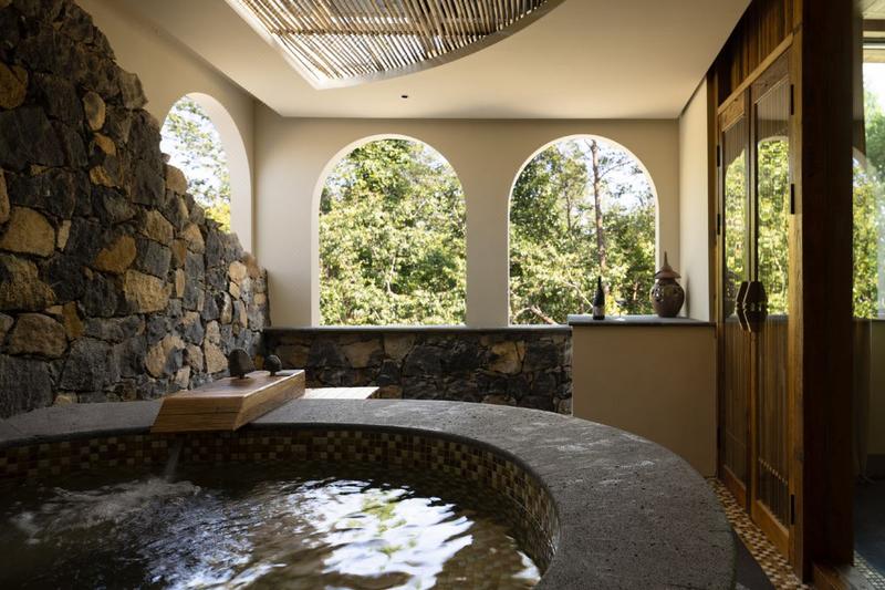 隐居祖国极西之地|诗意栖居|天然地热温泉|在三宅一届开启汤泉疗愈生活美学。 酒店就坐落在腾冲腾越镇,偏居一隅,闹中取静。建筑主体伴山而居亲近自然,交通便捷却又安静舒适。 |关于房间 深入高黎贡山腹地,将80°富含多种矿物质的界头大塘温泉,从1500米的地心引入客房。边城八十八处温泉喷珠溅玉,在腾冲与治愈的泉水相遇,不慕天池鸟,甘做温泉人,尽享滋养温泉私汤。 |关于分享空间 酒店公区拥有公共茶室、景观泳池、餐厅,儿童乐园,以及满足更多私人需求的健身房、会议室、私人茶室等。刻意设计成不设隔的流畅动线,意在有意消减人与人之间的物理距离。你可以在房间内享受温泉滋养,也可一身轻松地漫步腾冲。