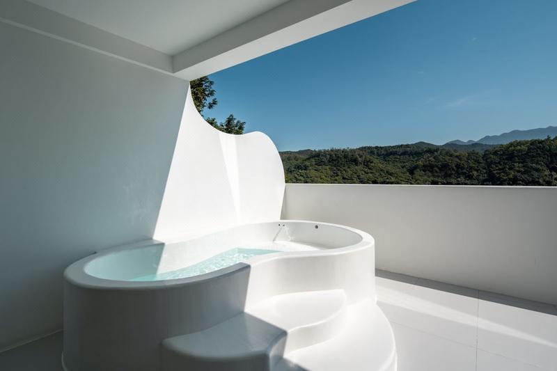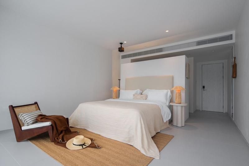 蓝白圣岛外观整体宛如白色纯净的宫殿一样,简洁的线条恰到好处地勾勒着这片纯净之地。分为L栋、J栋、K栋三栋,房间整体采用低饱和的色调,一整面取景框只为把蔚蓝直接送来你眼前,营造出度假的氛围,让人有一种置身海岛的错觉。 温馨提示:泡池房型为冷热水可以自行调节,泳池房型只有常温水哦~