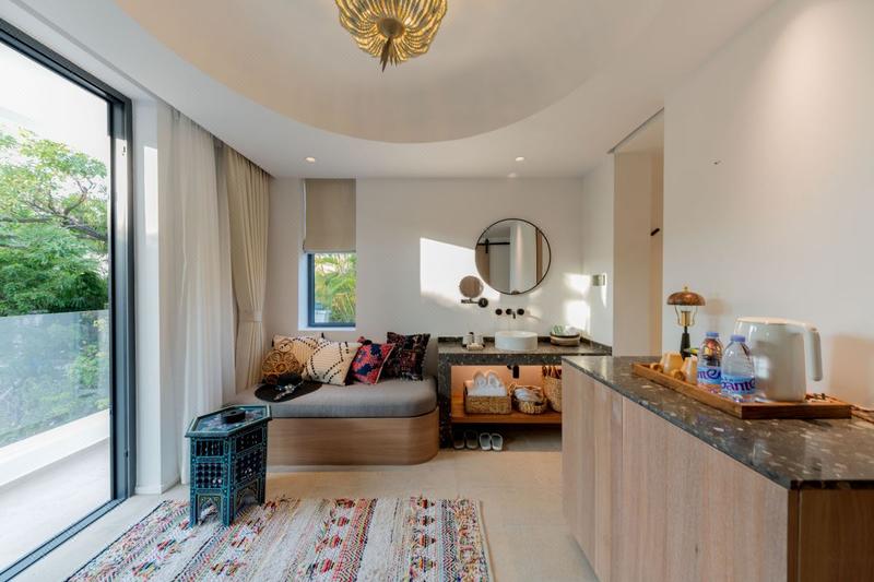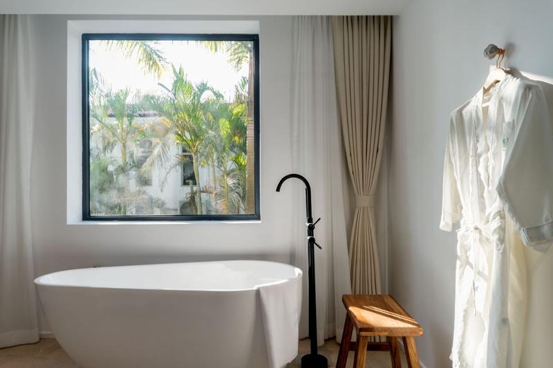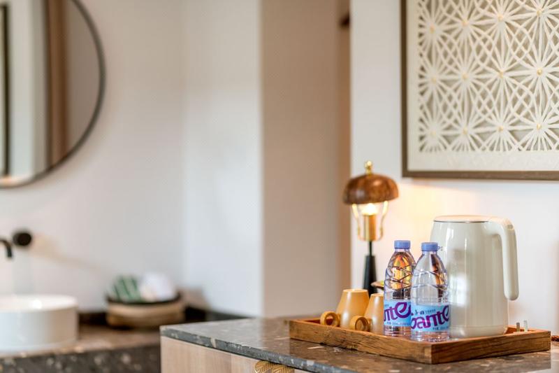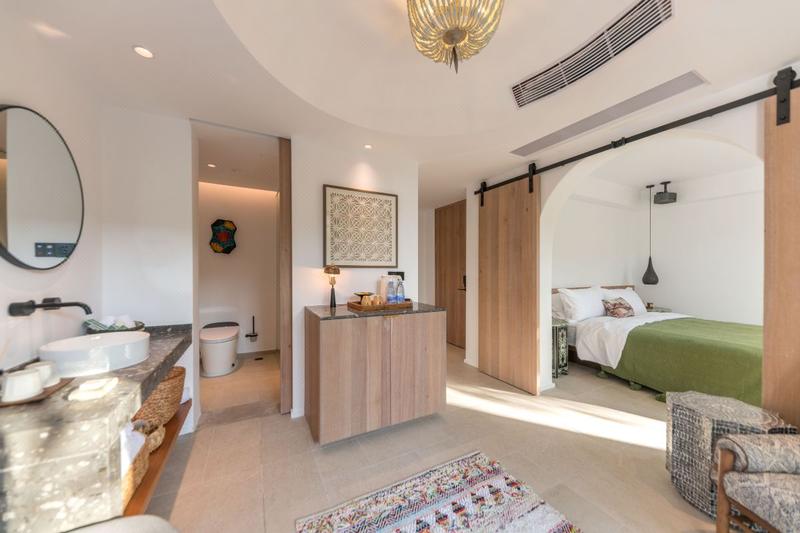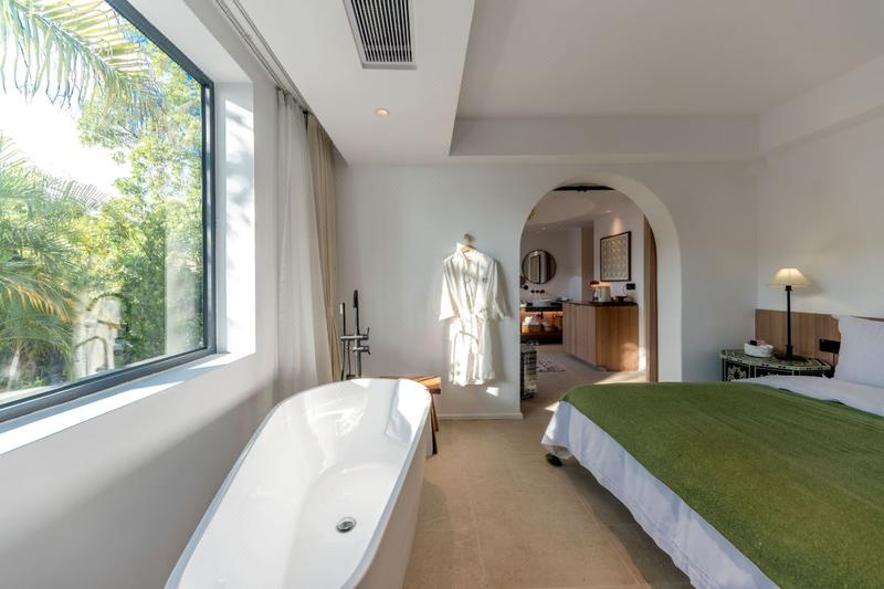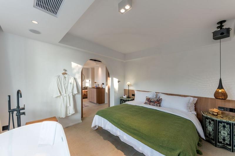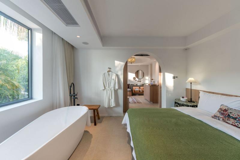 蓝白圣岛外观整体宛如白色纯净的宫殿一样,简洁的线条恰到好处地勾勒着这片纯净之地。分为L栋、J栋、K栋三栋,房间整体采用低饱和的色调,一整面取景框只为把蔚蓝直接送来你眼前,营造出度假的氛围,让人有一种置身海岛的错觉。 温馨提示:泡池房型为冷热水可以自行调节,泳池房型只有常温水哦~