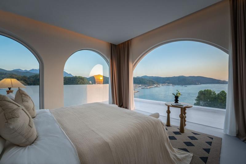 蓝白圣岛外观整体宛如白色纯净的宫殿一样,简洁的线条恰到好处地勾勒着这片纯净之地。分为L栋、J栋、K栋三栋,房间整体采用低饱和的色调,一整面取景框只为把蔚蓝直接送来你眼前,营造出度假的氛围,让人有一种置身海岛的错觉。 温馨提示:泡池房型为冷热水可以自行调节,泳池房型只有常温水哦~