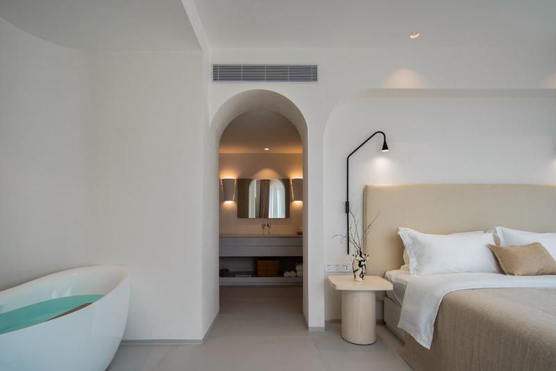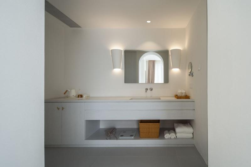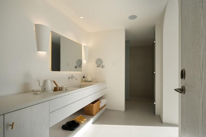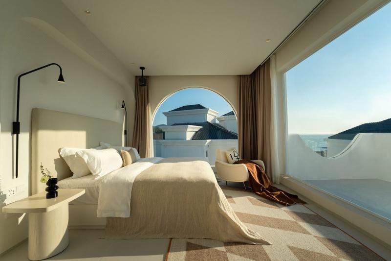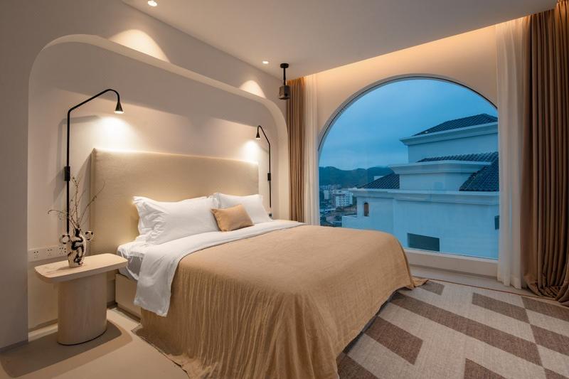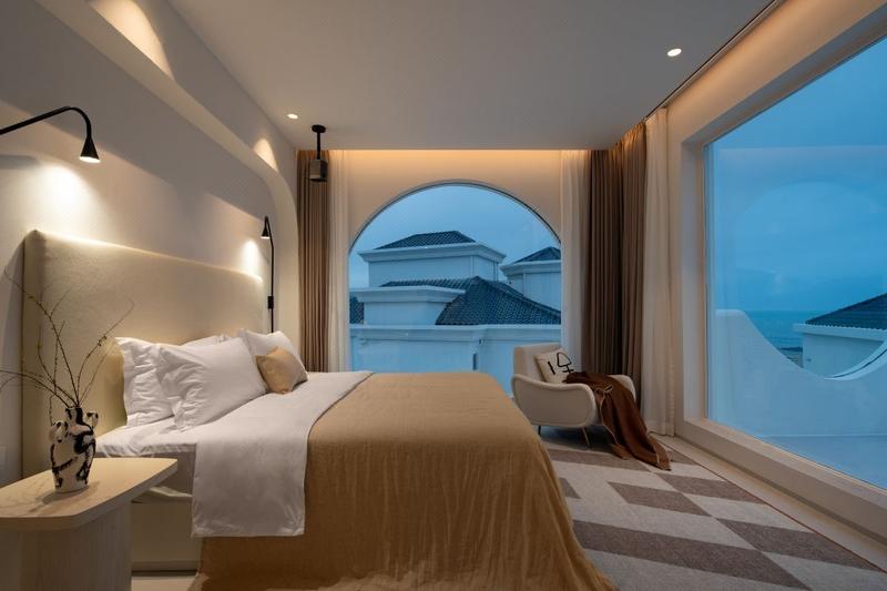 蓝白圣岛外观整体宛如白色纯净的宫殿一样,简洁的线条恰到好处地勾勒着这片纯净之地。分为L栋、J栋、K栋三栋,房间整体采用低饱和的色调,一整面取景框只为把蔚蓝直接送来你眼前,营造出度假的氛围,让人有一种置身海岛的错觉。 温馨提示:泡池房型为冷热水可以自行调节,泳池房型只有常温水哦~
