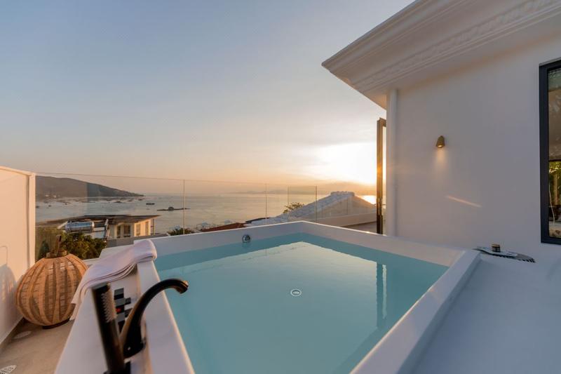 蓝白圣岛外观整体宛如白色纯净的宫殿一样,简洁的线条恰到好处地勾勒着这片纯净之地。分为L栋、J栋、K栋三栋,房间整体采用低饱和的色调,一整面取景框只为把蔚蓝直接送来你眼前,营造出度假的氛围,让人有一种置身海岛的错觉。 温馨提示:泡池房型为冷热水可以自行调节,泳池房型只有常温水哦~