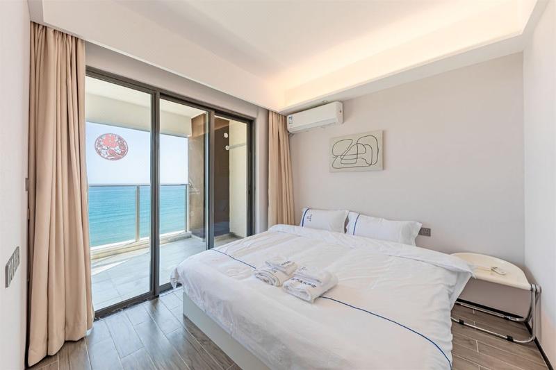 此套房间位于保利金町湾繁华地段,高端小区内,房屋一线海景,视野开阔,夜晚则可以在阳台上独享烛光晚餐,浪漫至极!楼下有超市 美食节,距离海边步行几分钟左右,海边上有音乐酒吧 餐厅 各种休闲等等... 床品每客更换,清洁,每日都有专职阿姨打扫房间/公共空间,保证卫生条件