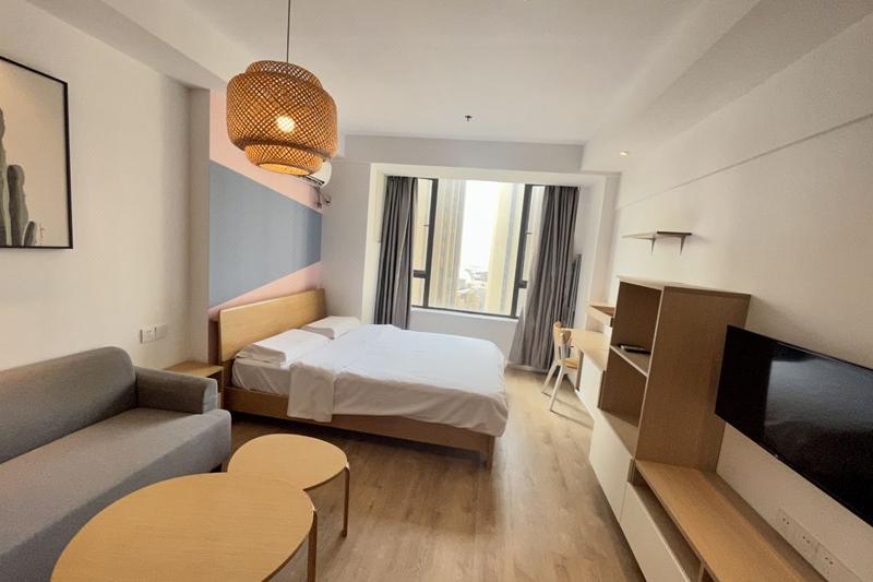 房间:北欧轻奢大床房(全自动洗衣机+冰箱+智能门锁)