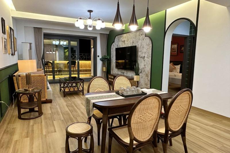 民宿坐落在勐泐大佛寺风景区,【鹿尘新宿】在西双版纳占尽地理之宜。距离机场和高铁站几分钟车程,毗邻勐泐大佛寺,距离告庄、星光夜市都只有几分钟车程。民宿拥有全国多间客房的酒店群,附近的西双版纳大剧院,傣泰风情街等,给度假生活带来身心双重实享,民宿与勐泐大佛寺咫尺之隔,度假区游客集散中心坐落于此,更可遍赏西双版纳异域风情,可以堪称版纳新地标。宽敞舒适的套房,设计高雅、配套齐全,【鹿尘】以“宾客至上,服务为首”为经营宗旨,24小时服务管家【鹿尘】的服务成为您旅游度假、养生、休闲娱乐的很好选择,万民追捧的度假民宿,畅享尊贵度假生活!为每位客人提供专职24小时管家服务。,赠送当季新鲜迎宾水果和小吃。房间配置:品牌家居,所有房源都配有冰箱、洗衣机、微波炉、吹风机等日用品齐全配置,致力高档舒适体验;星级床品让您随时可以深度睡眠,房间配置免费矿泉水、一次性马桶垫,让您住得更放心。 卫生标准:专业保洁师打扫,保证一客一换,统一布草洗涤,全屋消毒;专人专项服务对接,星级品质民宿,期待与您的相遇