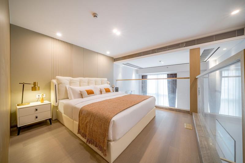 【交通】:本店位于深圳市龙岗区黄阁路天安数码城,坐拥黄阁坑地铁站及愉园地铁站,龙平西路口公交站,与天安数码城零距离直达,3个高尔夫球场驾车25分钟内均可到达。 【配套】每间房均配备巨幕投影,支持投屏尽情享受院线大片及实时赛事,同时为方便商旅顾客出差需求,网络一门一线独享办公网络,精心配备了伊莱克斯洗衣机及烘干机,300升冰箱等生活设备于房间,轻松解决短期出行亦或是逗留出差的衣物换洗,生活配套等问题。