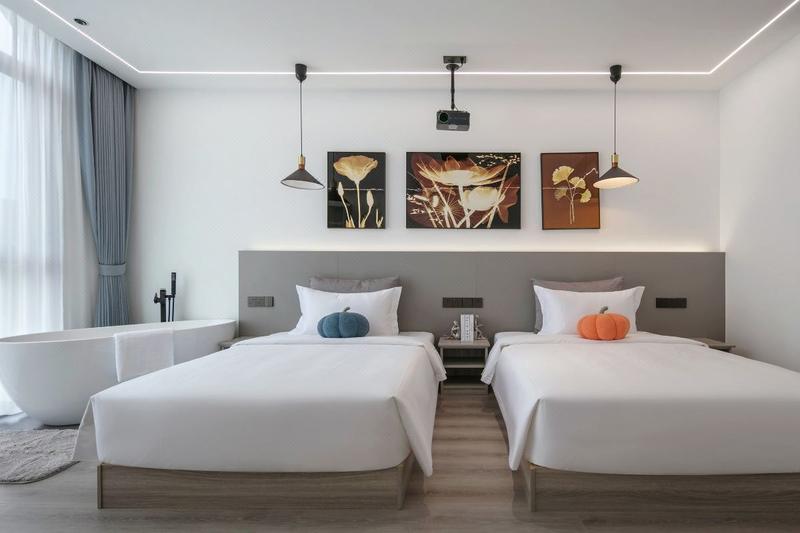 - 房间(开放): 楼 双子302·山景浴缸投影双床房