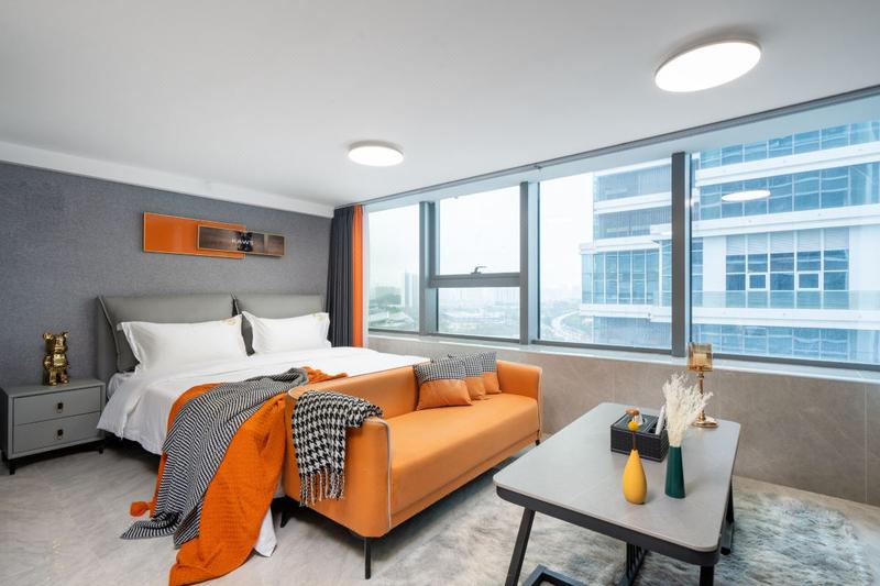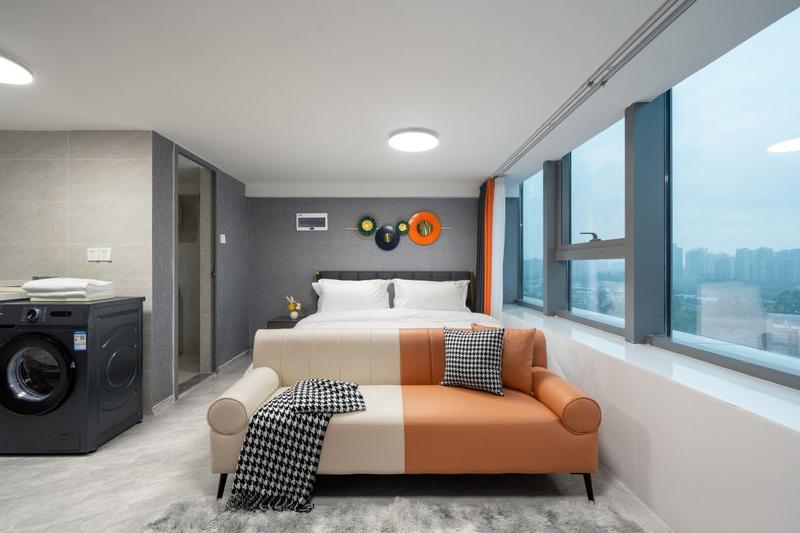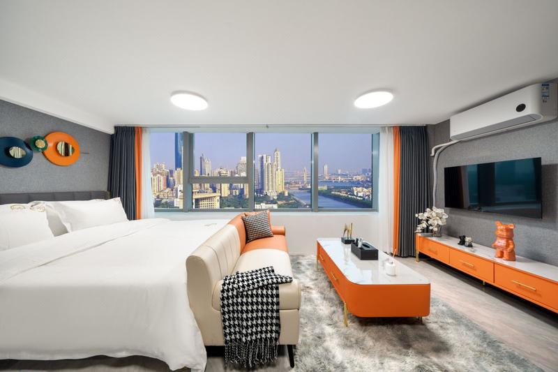【地理位置】本店临近琶洲会展圈、位于东圃商圈,三溪地铁站,毗邻美林天地商业体,临近黄埔大道主干道; 【房间户型】单间落地窗现代轻奢风格; 【设备设施】室内配套洗衣机,冰箱,投屏电视一次性用品齐全舒适入住; 集旅游度假休闲、商务出差、团队出游于一体、期待您的下榻。