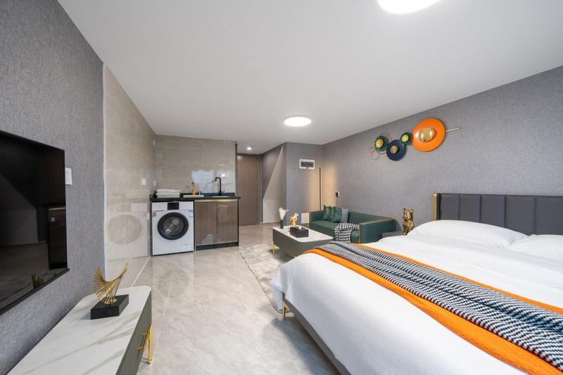 【地理位置】本店临近琶洲会展圈、位于东圃商圈,三溪地铁站,毗邻美林天地商业体,临近黄埔大道主干道; 【房间户型】单间落地窗现代轻奢风格; 【设备设施】室内配套洗衣机,冰箱,投屏电视一次性用品齐全舒适入住; 集旅游度假休闲、商务出差、团队出游于一体、期待您的下榻。