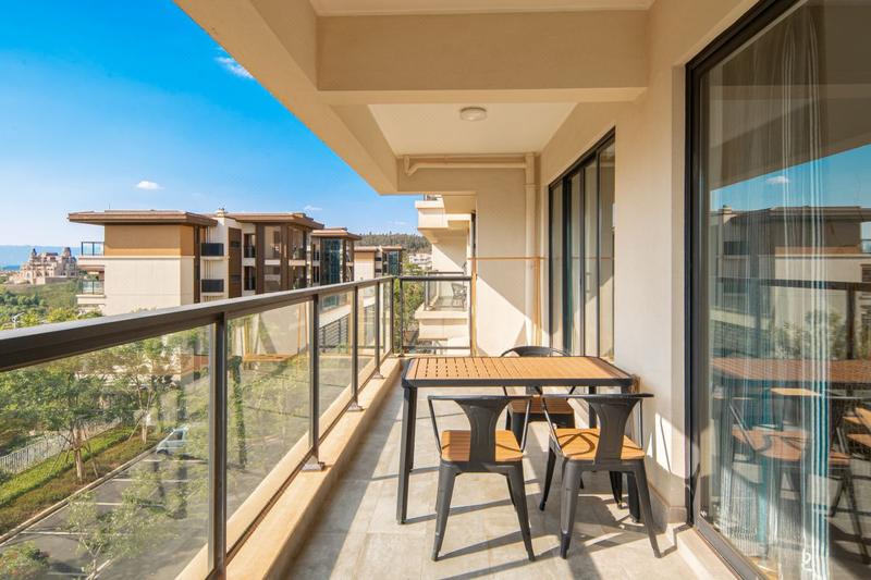 房间:半山半海两居叠院套房(阳台+休闲桌椅+冰箱+洗衣机+厨房)