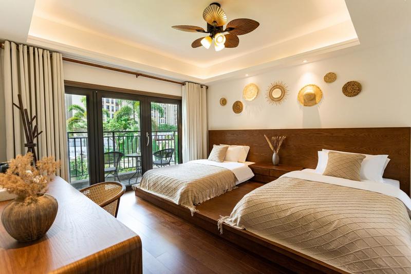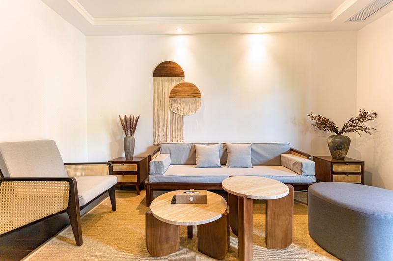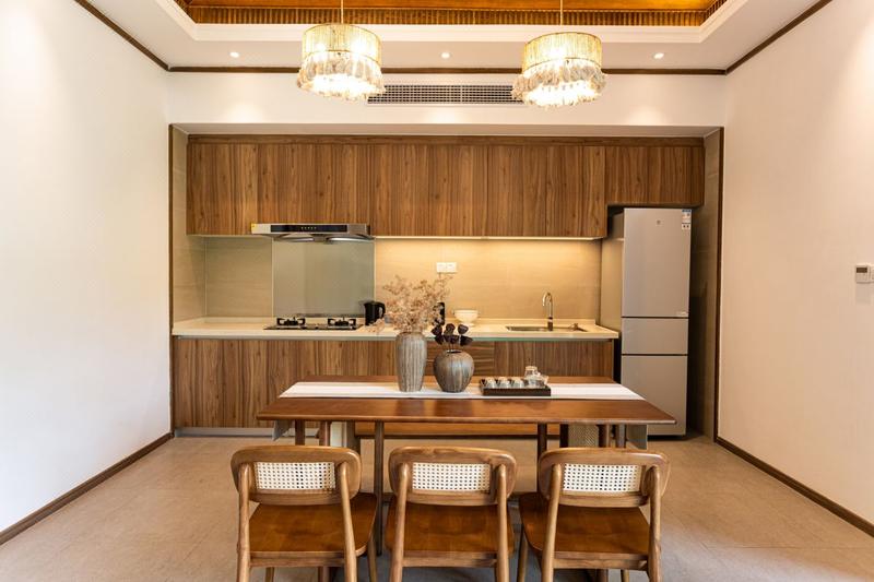 别墅位于景洪市嘎洒片区,距景洪城区,驱车前往城区开车时间约15分钟,酒店免费提供一次接机或送机服务。周边环境方面,酒店与天然山脉大黑山相近,南凹河自项目东北向西南方向穿流而过,酒店周边低密度住宅、花园洋房、商业配套、幼儿园、南凹河水岸公园、室外游泳池、温泉中心、公共活动空间及景观绿化等公共配套设施一应俱全,带给您全方位的舒适度假体验。 酒店的装修风格以北欧的斯堪的纳维亚风格为主,简约大气,温馨舒适,传统与现代设计在这里完美交融。大量中性色调木质家具的使用,以及自然光恰到好处地引入,让人一进门便不由自主地放松下来。白天窗明几净,晚上月朗风清,有时耳畔一点雨林鸟鸣,正是身心SPA的大好机会。 硬件方面,酒店内承接生日派对、商业品鉴、酒会,支持团建、火锅趴等。庭院有天幕和烧烤炉,可露营,可烧烤,可搓麻。酒店提供免费早餐,晚餐欢迎您品尝酒店本地大厨精心烹制的正宗傣家饭。除此之外,别墅内还贴心配备了自助洗衣机、拖鞋杀菌柜,有效提升您的出行体验感。