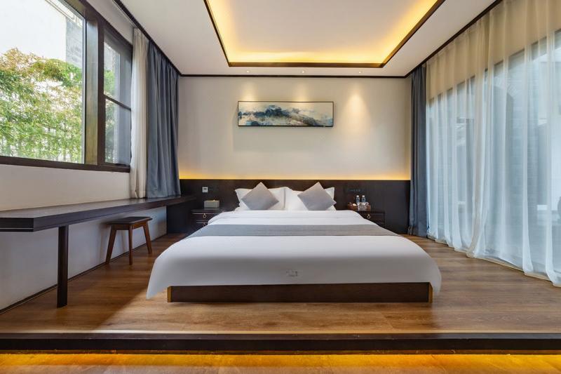 建水景宿客栈位于古城紫陶创意园区二期内,别致安静的小院静静的绽放着月华和韶光!客栈地理位置极佳,交通便捷,出行自如,东邻“小天安门”-东门、“滇南大观园”-朱家花园;西邻十七孔桥、世界纪念性建筑遗产-团山民居;南邻中国第二大孔庙-文庙、武庙;背靠古城生态湖公园;网红打卡地废墟上的艺术—蚁工坊。驱车前往网红紫陶街约10分钟即可到达。 景宿客栈秉承建水古城之风,初入眼帘的大门低调却不失奢华,由大气个性的迎宾道步入古色古香与轻奢简洁完美结合的庭院,让你瞬间感受到安静柔软、温馨雅致,经过精心设计打造的客房,从细节出发,处处彰显着品质与追求,人性化的设施一应俱全:恒温花洒、智能马桶、高清大屏投影以及干湿分离的卫生间,将客栈的档次达到了星级酒店水平,国际品牌的舒达床垫更是将你一天的疲惫全然接纳。现代化的设施、宾至如归的服务,让你忘却自己是到这座千年古城投宿来了。景宿--期待与每一个精致生活的你共度美好时光,久久都不足矣!