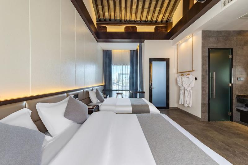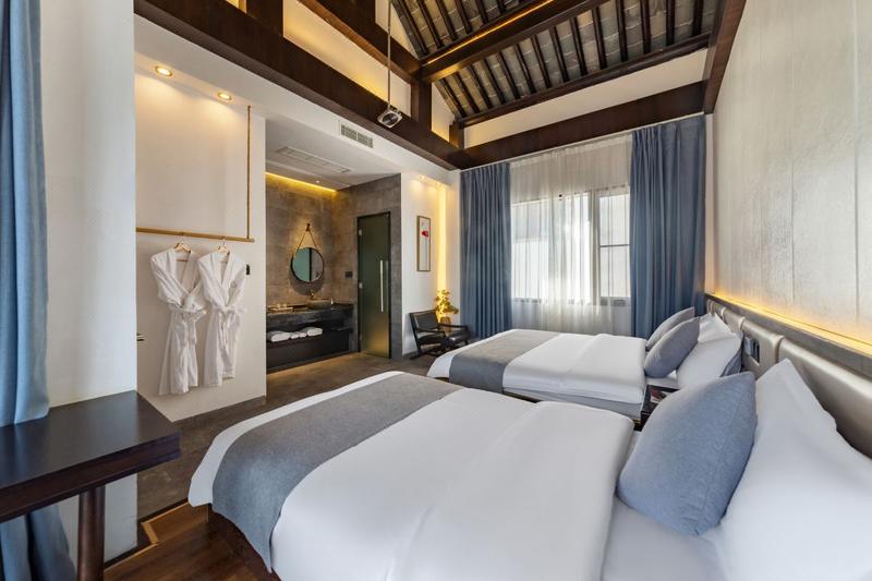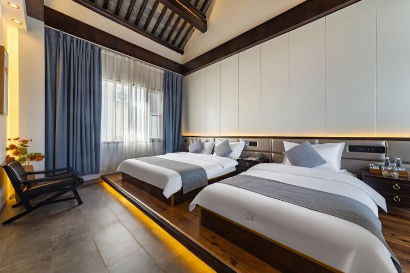 建水景宿客栈位于古城紫陶创意园区二期内,别致安静的小院静静的绽放着月华和韶光!客栈地理位置极佳,交通便捷,出行自如,东邻“小天安门”-东门、“滇南大观园”-朱家花园;西邻十七孔桥、世界纪念性建筑遗产-团山民居;南邻中国第二大孔庙-文庙、武庙;背靠古城生态湖公园;网红打卡地废墟上的艺术—蚁工坊。驱车前往网红紫陶街约10分钟即可到达。 景宿客栈秉承建水古城之风,初入眼帘的大门低调却不失奢华,由大气个性的迎宾道步入古色古香与轻奢简洁完美结合的庭院,让你瞬间感受到安静柔软、温馨雅致,经过精心设计打造的客房,从细节出发,处处彰显着品质与追求,人性化的设施一应俱全:恒温花洒、智能马桶、高清大屏投影以及干湿分离的卫生间,将客栈的档次达到了星级酒店水平,国际品牌的舒达床垫更是将你一天的疲惫全然接纳。现代化的设施、宾至如归的服务,让你忘却自己是到这座千年古城投宿来了。景宿--期待与每一个精致生活的你共度美好时光,久久都不足矣!