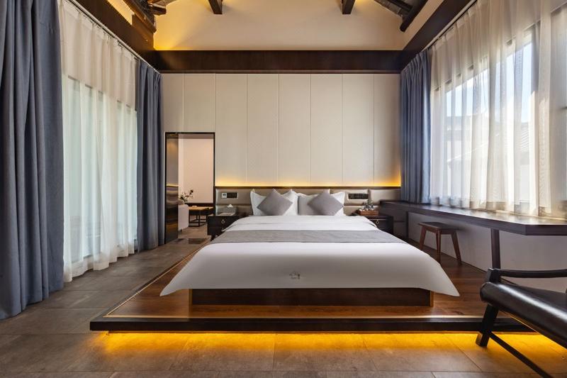 建水景宿客栈位于古城紫陶创意园区二期内,别致安静的小院静静的绽放着月华和韶光!客栈地理位置极佳,交通便捷,出行自如,东邻“小天安门”-东门、“滇南大观园”-朱家花园;西邻十七孔桥、世界纪念性建筑遗产-团山民居;南邻中国第二大孔庙-文庙、武庙;背靠古城生态湖公园;网红打卡地废墟上的艺术—蚁工坊。驱车前往网红紫陶街约10分钟即可到达。 景宿客栈秉承建水古城之风,初入眼帘的大门低调却不失奢华,由大气个性的迎宾道步入古色古香与轻奢简洁完美结合的庭院,让你瞬间感受到安静柔软、温馨雅致,经过精心设计打造的客房,从细节出发,处处彰显着品质与追求,人性化的设施一应俱全:恒温花洒、智能马桶、高清大屏投影以及干湿分离的卫生间,将客栈的档次达到了星级酒店水平,国际品牌的舒达床垫更是将你一天的疲惫全然接纳。现代化的设施、宾至如归的服务,让你忘却自己是到这座千年古城投宿来了。景宿--期待与每一个精致生活的你共度美好时光,久久都不足矣!